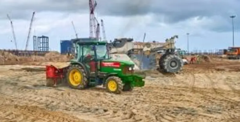 Enviro-Mat is a highly-developed soil improvement methodology, consisting of a combination of local soil, cement and additives including minerals, salt and zeolites, which increases ground bearing capacity up to 50t/m². At Dangote, Mammoet applied this additive to lay down areas, hard stands and crane pads covering over 500,000 sq m of the site.