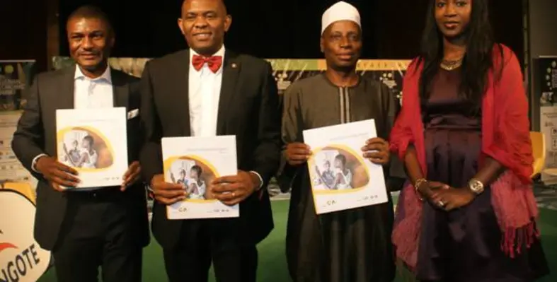 From right, Executive Director CSR-in-Action, Bekeme Masade-Olowola ,the Minister of National Planning Commission, Dr Shamsuddeen Usman, the Chairman of Heirs Holdings Limited, Tony Elumelu and the Director General of the NESG, Frank Nweke Jr, at the official launch of Nigerias premier comprehensive CSR report tagged