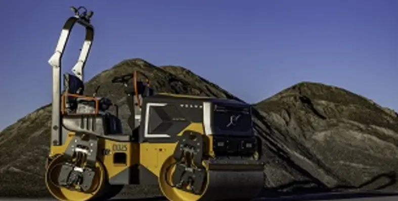 The Volvo DD25 Electric asphalt compactor made its debut at CONEXPO-CON/AGG earlier this year. (Image source: Volvo CE)